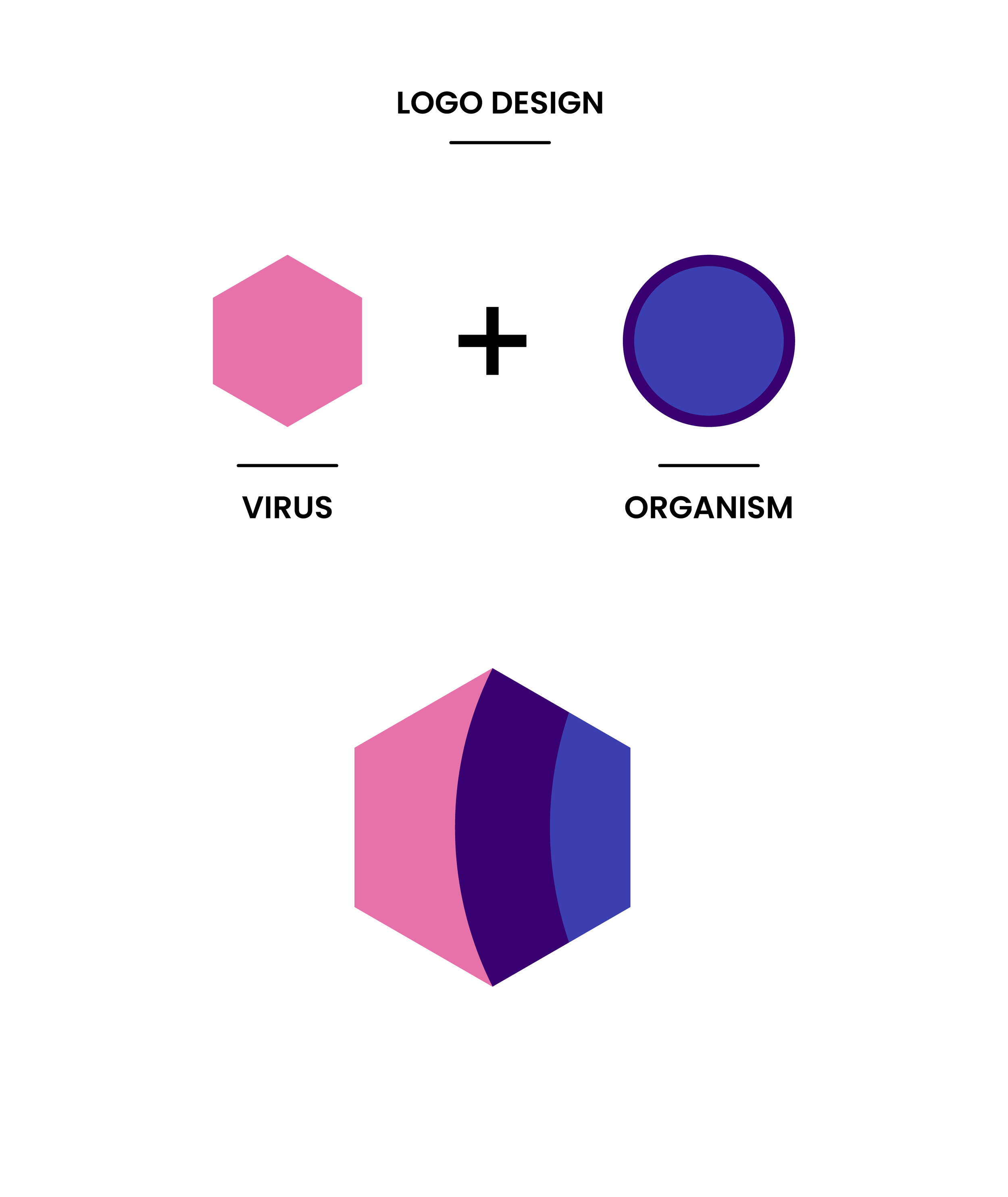 For the logo, I wanted to create a simple shape that communicated this interaction between two different organisms. In the biological scientific community, a virus is represented by a hexagon. This became the perfect starting point.