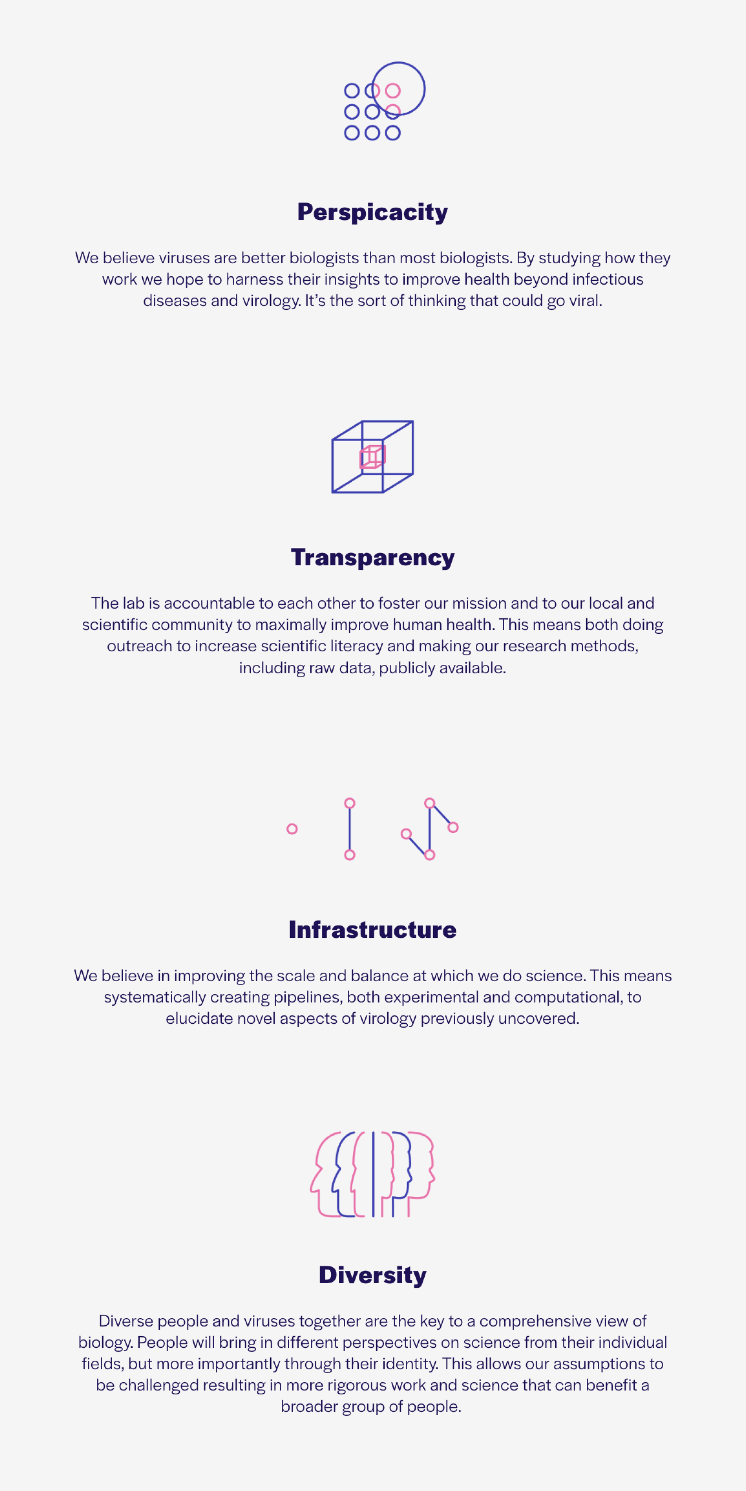 For the header copy of the values section of the website, I wanted to convey a sense of community and a shared north star that everyone associated with the lab could connect with.