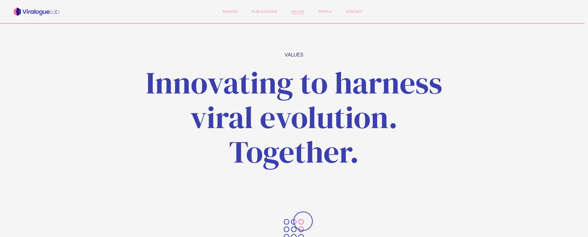 However, since the goal here was to stand out, I convinced the client to buck tradition. Through discussions and many brainstorming sessions, the lab was named ‘Viralogue’ which was a portmanteau of the words ‘Virus’ and ‘Dialogue’. The research done in this lab would be regarding how the virus and the host communicate, whether that be a symbiotic relationship or not. Luckily for us, the domain name was also available.