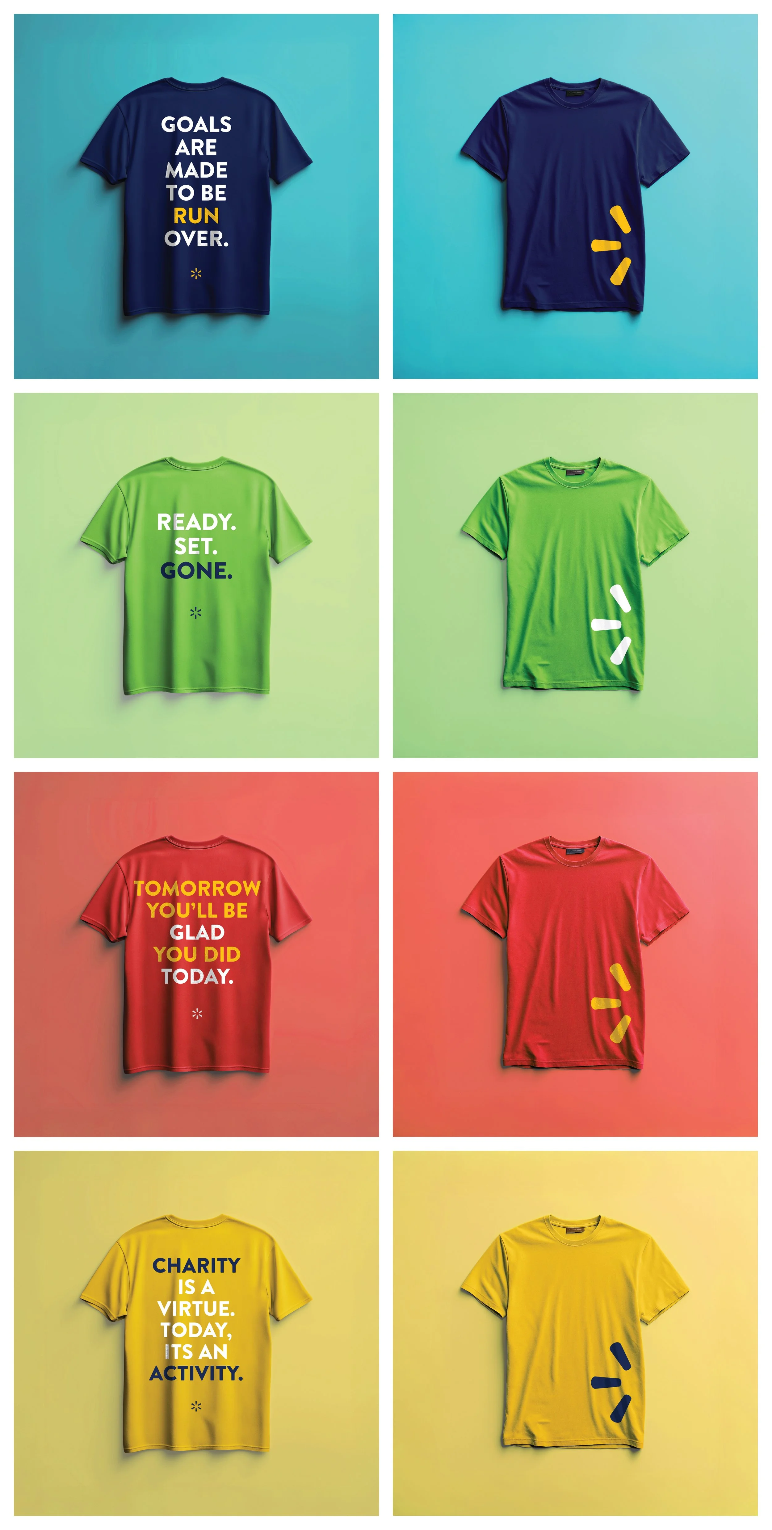 I came up with the concept, wrote the copy and designed the t-shirts shown here. The internal team that requested these designs was very pleased with the final results and Walmart was well represented at the run.
